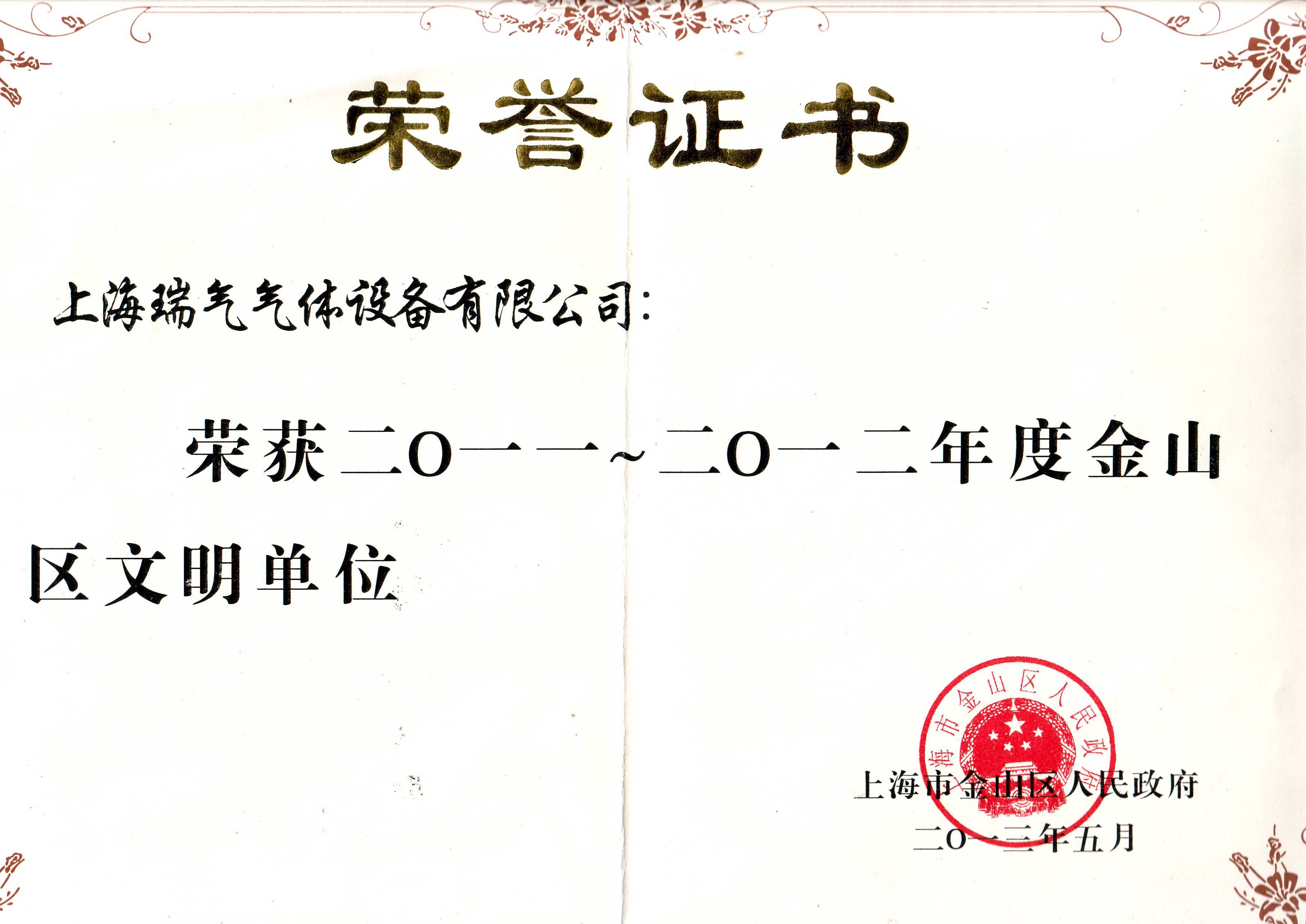 2012年 瑞氣榮獲金山文明單位