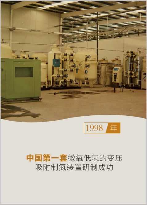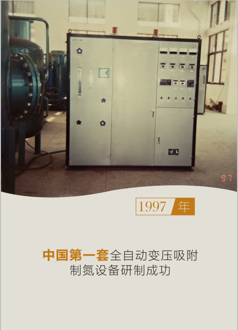 1997年,國內(nèi)首套全自動變壓吸附制氮設(shè)備研制成功。