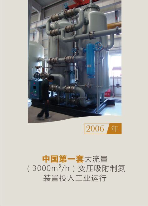 2006年,瑞氣研發(fā)的國內(nèi)首套大流量(3000m3/h)變壓吸附制氮裝置投入工業(yè)運(yùn)行。