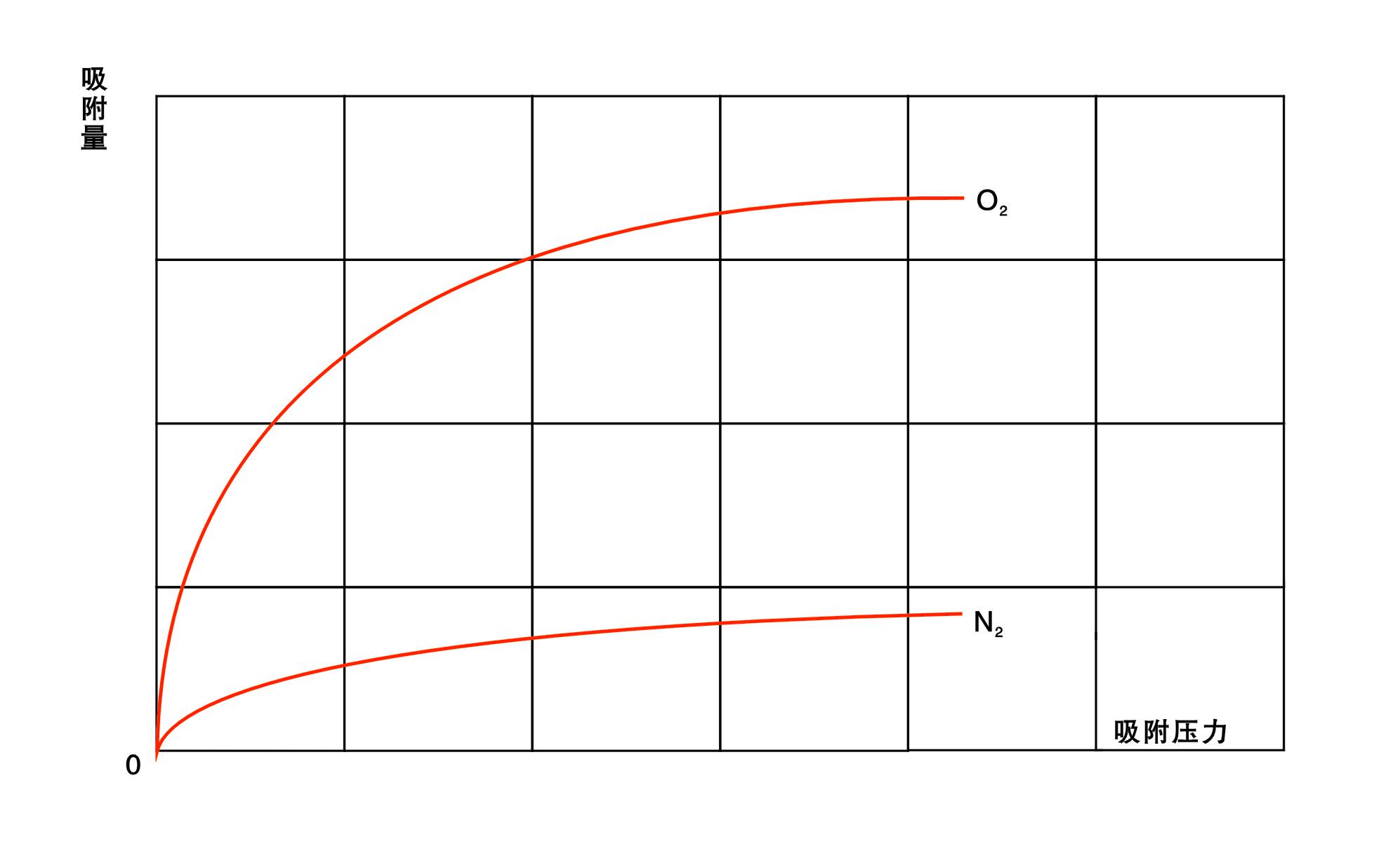 如上所述,在空氣壓力升高時,碳分子篩將大量吸附氧氣、二氧化碳和水分。當壓力降到常壓時,碳分子篩對氧氣、二氧化碳和水分的吸附量較小。